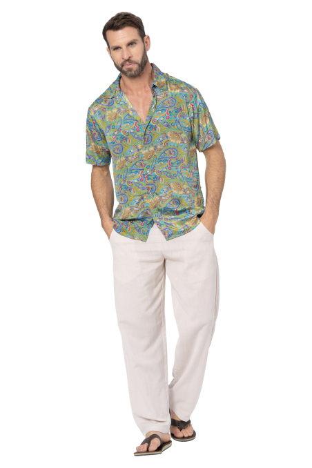 Chemise.Matière : 100% POLYESTER.Construction : tissé.Lavage : machine à laver 30°C.Couleur(s) : vert - turquoise - rose - jaune - violet.Coupe : droite.Manches : manches courtes.Col : chemise, à boutons.Fermeture : à boutons.Correspondance taille FR : M - L - XL - 2XL - 3XL (38 - 40 - 42 - 44 - 46).