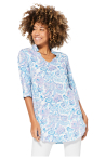 Chemise.Coupe évasée.Manches 3/4.Col v.Couleur blanc, bleu, violet.100% viscose.La correspondance des tailles est la suivante :S/M = 36/38L/XL = 40/42