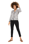 Chemisier court.Coupe cintrée.Manches longues.Avec bouton.Col v.Couleur blanc, noir.100% polyester.La correspondance des tailles est la suivante :S/M = 36/38L/XL = 40/42XXL = 44