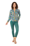 Chemisier court.Coupe cintrée.Manches longues.Avec bouton.Col v.Couleur turquoise, violet, jaune.100% polyester.La correspondance des tailles est la suivante :S/M = 36/38L/XL = 40/42XXL = 44