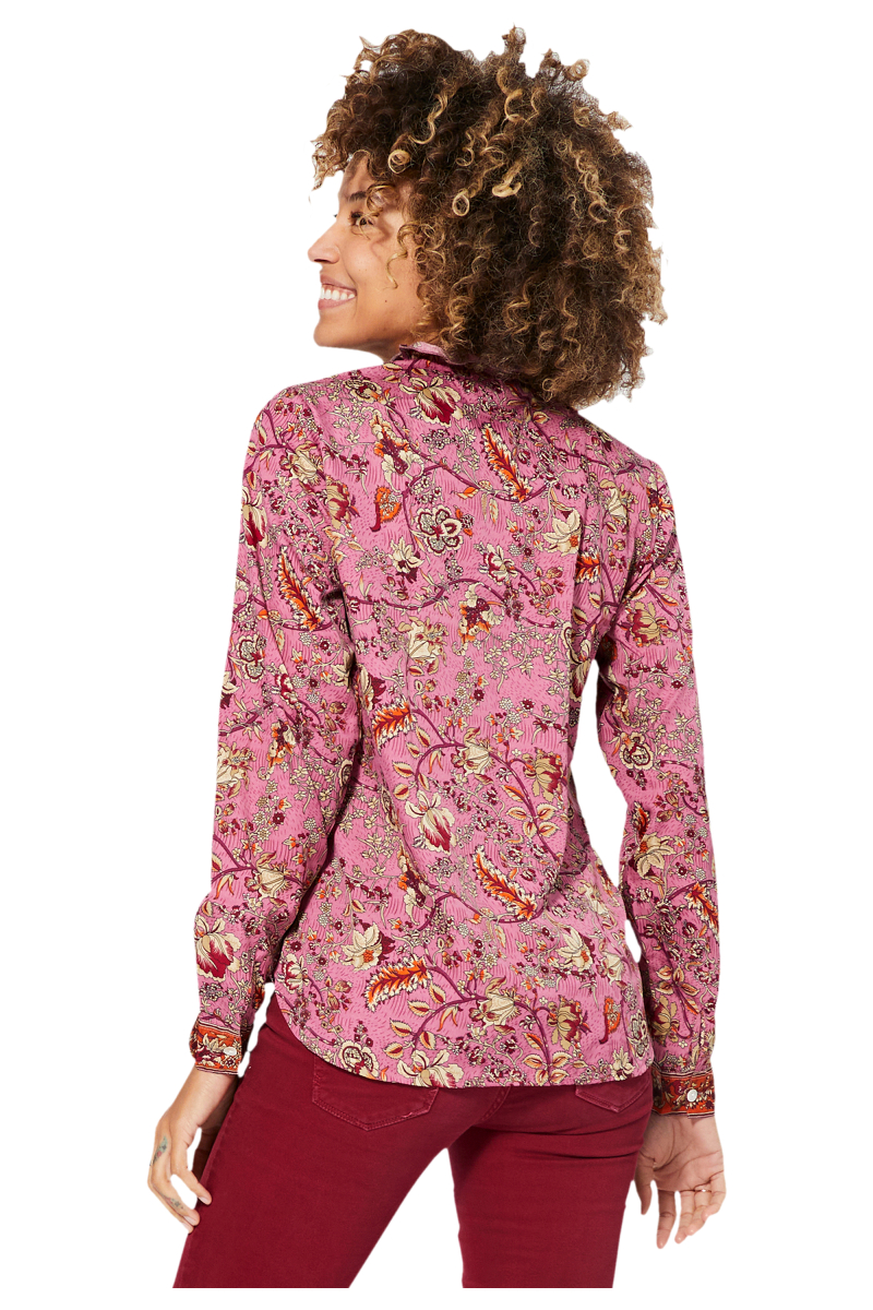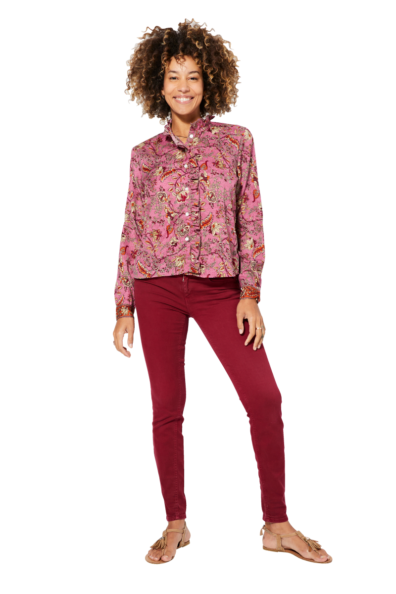 Chemisier.Coupe a volants.Manches longues.Avec bouton.Col mao.Couleur rose, bordeaux, beige, orange.100% polyester.La correspondance des tailles est la suivante :S/M = 36/38L/XL = 40/42