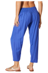 Pantalon.Matière : 100% RAYONNE.Construction : tissé.Lavage : machine à laver 30°C.Couleur(s) : bleu.Coupe : slim.Longueur : mi-long.Poches : 2 poches devant.Fermeture : taille élastique au dos.Correspondance taille FR : S/M - L/XL (36/38 - 40/42).