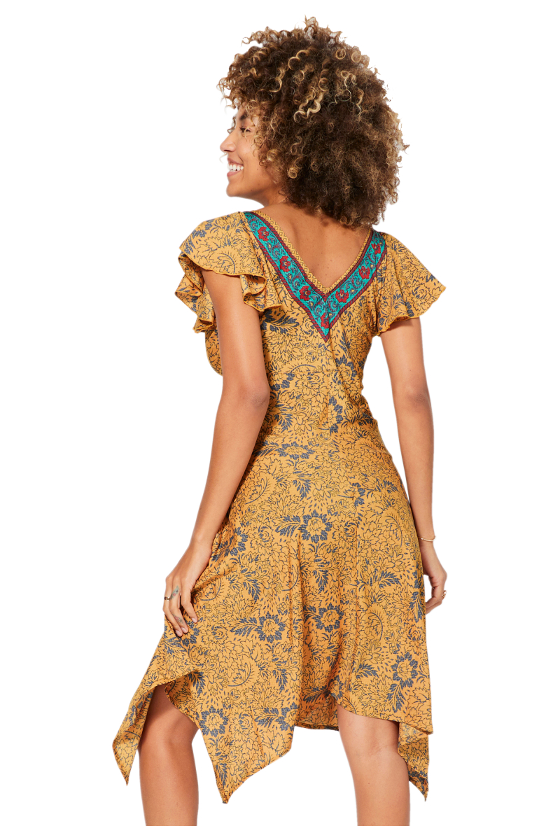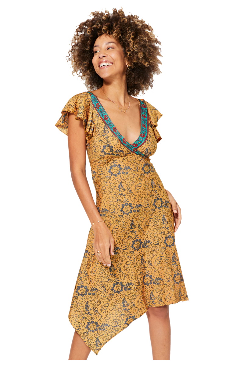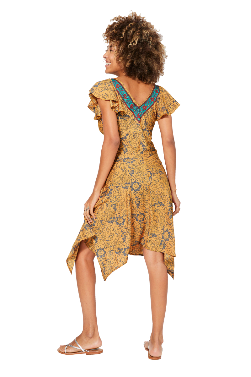 Robe asymétrique.Manches courtes.Volantes.Volantes.Col décolleté v.Couleur jaune, gris.100% polyester.La correspondance des tailles est la suivante :S/M = 36/38L/XL = 40/42