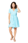 Robe.Matière : 100% VISCOSE.Construction : tissé.Lavage : machine à laver 30°C.Couleur(s) : turquoise - blanc.Coupe : évasée.Longueur : courte.Manches : manches courtes.Col : décolleté v, cache-coeur.Ceinture : amovible.Correspondance taille FR : S/M - L/XL (36/38 - 40/42).