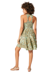Robe.Matière : 100% POLYESTER.Construction : tissé.Lavage : machine à laver 30°C.Couleur(s) : or - beige - vert - bleu marine.Coupe : évasée.Longueur : courte.Manches : sans manches, bretelles larges.Col : v, dos nageur diamant.Fermeture : dos smocké.Correspondance taille FR : S/M - L/XL (36/38 - 40/42).