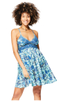 Robe.Matière : 100% POLYESTER.Construction : tissé.Lavage : machine à laver 30°C.Couleur(s) : turquoise - bleu - noir - blanc.Coupe : évasée.Longueur : courte.Manches : sans manches, bretelles fines réglables.Col : décolleté v, cache-coeur.Fermeture : dos smocké.Correspondance taille FR : S/M - L/XL (36/38 - 40/42).