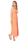 Robe.Matière : 100% VISCOSE.Construction : tissé.Lavage : machine à laver 30°C.Couleur(s) : orange - blanc.Coupe : évasée.Longueur : longue.Manches : sans manches, bretelles fines réglables.Col : cache-coeur.Fermeture : dos smocké.Correspondance taille FR : S/M - L/XL (36/38 - 40/42).