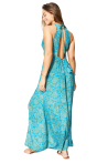 Robe.Matière : 100% POLYESTER.Construction : tissé.Lavage : machine à laver 30°C.Couleur(s) : turquoise - jaune.Coupe : droite fendue.Longueur : longue.Manches : sans manches, bretelles fines à nouer.Col : v, cache-coeur.Fermeture : liens à nouer dans le dos.Correspondance taille FR : S/M - L/XL (36/38 - 40/42).