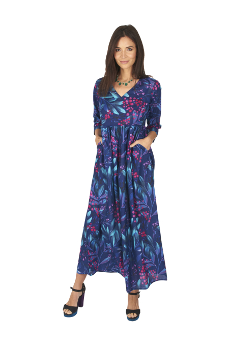 La robe longue femme été en voile de coton fleurie Hélène est une fringue pour femme tendance cet été par ces imprimés en vogue.Ce vêtement femme est agréable à porter.C'est une robe qui détient un joli décolleté en V.Cette robe est colorée et avec des imprimés fleuris.Elle dispose de manches 3/4.Elle est ample et possède de larges plis sous la poitrine.Cette robe longue est dotée de 2 poches sur le devant.La matière de cette robe pas chère est 100% voile de coton.La fabrication de cette robe femme est artisanale et provient d'Inde.Ce vêtement femme est à laver en machine à 30°C maximum. Nous vous conseillons pour les premiers lavages de le laver séparément des autres vêtements ou de le laver avec des vêtements de couleurs noire afin d'éviter dégorgement et décoloration comme c'est un vêtement neuf. Le mannequin sur les photos porte cette robe bohème pas chère en taille S/M soit du 36/38. La correspondance des tailles pour cet habit est la suivante :S/M = 36/38 L/XL = 40/42XXL = 44Soyez fière de porter la robe longue femme été en voile de coton fleurie Hélène.Cette robe longue se porte aussi bien au printemps qu'en été. Sa matière en voile de coton en fait un vêtement léger et agréable en cas de fortes chaleurs. Elle est féminine par son joli col en V et s'adapte facilement à toutes les morphologies grâce à ses larges plis formés sous poitrine qui donnent de l'ampleur. Cette robe à l'esprit bohème dispose de manches 3/4 mais aussi de 2 poches pratiques sur le devant.La robe longue femme été en voile de coton fleurie Hélène se porte très facilement, aussi bien pour le quotidien que pour une soirée. Son col en V vous permet de mettre en valeur un joli collier ethnique ou plus sobre selon le style désiré. Au printemps ou en soirée d'été, elle s'accommode très bien avec un boléro ou une étole unie pour mettre en avant ses imprimés originaux et fleuris. N'hésitez pas à porter cette robe longue avec des chaussures compensées ou à talons fins pour allonger votre silhouette.Akoustik vous propose la robe longue femme été en voile de coton fleurie Hélène en 2 variantes.