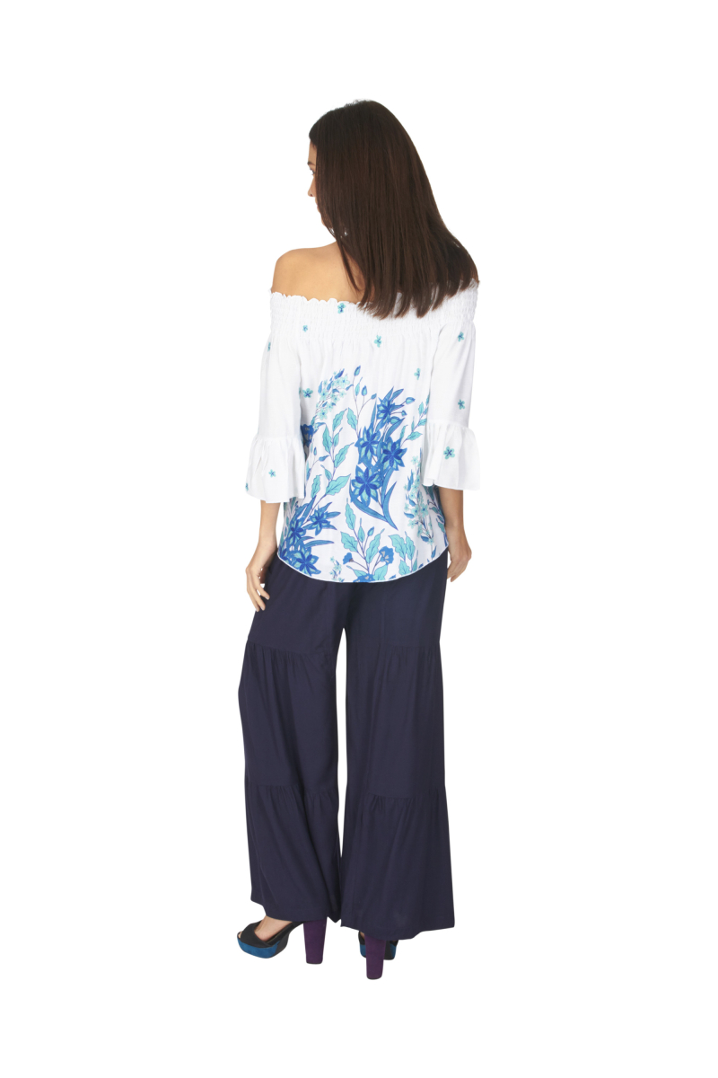 Le top d'été femme bohème col bateau idéal mariage Tony se porte facilement sur tout type de bas pour toutes les occasions.Ce vêtement femme été est à imprimés fleuris.Ce top est à col bateau élastiqué qui laisse les épaules dénudées.Il est doté de manches 3/4 bouffantes.La matière de ce top bohème est 100% rayonne.La fabrication de ce produit est artisanale et fait en Inde. Pour le lavage, nettoyez-la en machine à 30°C maximum. Nous vous conseillons pour les premiers lavages de la laver séparément des autres vêtements afin d'éviter dégorgement et décoloration comme c'est un vêtement neuf. La mannequin porte la taille S/M sur la photo. La correspondance des tailles est la suivante : S/M = 36/38L/XL = 40/42Le top d'été femme bohème col bateau idéal mariage Tony est un top style blouse très distingué et original. Il se porte facilement sur une jupe, un pantalon slim ou ample, tout est possible comme association mais nous vous suggérons un bas uni afin de mettre en valeur ses imprimés. Il est charmant par son col bateau pourvu d'un large élastique qui laisse vos épaules dénudées. Ce vêtement femme possède des manches 3/4 détenant un fin élastique vers le bas pour un effet bouffant. Ce top d'été bohème est agréable par sa matière très légère qu'est la rayonne (viscose) et son ampleur. Il est idéal pour le quotidien mais il peut aussi faire un parfait vêtement de soirée ou mariage avec une étole translucide. Le top d'été femme bohème col bateau idéal mariage Tony vous est proposé en différentes variantes pour vous satisfaire au mieux.