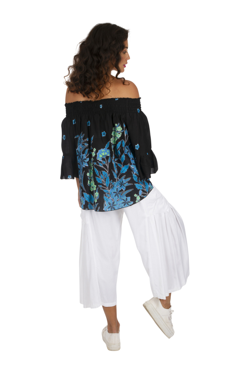 Le top d'été pour femme col bateau et manches 3/4 Paolo se porte facilement sur tout type de bas pour toutes les occasions.Ce vêtement femme été est à imprimés fleuris.Ce top est à col bateau élastiqué qui laisse les épaules dénudées.Il est doté de manches 3/4 bouffantes.La matière de ce top est 100% rayonne.La fabrication de ce produit est artisanale et fait en Inde. Pour le lavage, nettoyez-la en machine à 30°C maximum. Nous vous conseillons pour les premiers lavages de la laver séparément des autres vêtements afin d'éviter dégorgement et décoloration comme c'est un vêtement neuf. La mannequin porte la taille S/M sur la photo. La correspondance des tailles est la suivante : S/M = 36/38L/XL = 40/42Le top d'été pour femme col bateau et manches 3/4 Paolo est un top style blouse très distingué et original. Il se porte facilement sur une jupe, un pantalon slim ou ample, tout est possible comme association mais nous vous suggérons un bas uni afin de mettre en valeur ses imprimés. Il est charmant par son col bateau pourvu d'un large élastique qui laisse vos épaules dénudées. Ce vêtement femme possède des manches 3/4 détenant un fin élastique vers le bas pour un effet bouffant. Ce top d'été est agréable par sa matière très légère qu'est la rayonne (viscose) et son ampleur. Il est idéal pour le quotidien mais il peut aussi faire un parfait vêtement de soirée ou mariage avec une étole translucide. Le top d'été pour femme col bateau et manches 3/4 Paolo vous est proposé en différentes variantes pour vous satisfaire au mieux.