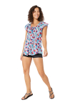 Top.Coupe évasée.Manches courtes.Col carré.Lien de serrage.Couleur bleu, rose, rouge.100% voile de coton.La correspondance des tailles est la suivante :S/M = 36/38L/XL = 40/42XXL = 44