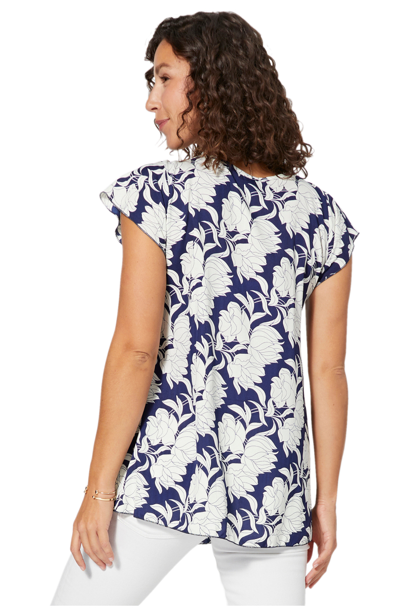 Top.Coupe évasée.Manches courtes.Col carré.Lien de serrage.Couleur bleu marine, blanc.100% polyester.La correspondance des tailles est la suivante :S/M = 36/38L/XL = 40/42XXL = 44