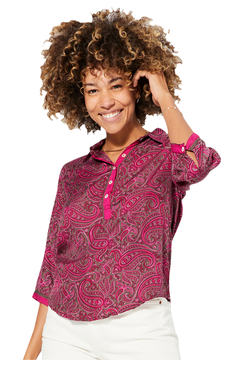 Top.Coupe droite.Manches 3/4.Col chemise.Couleur rose, marron.100% polyester.La correspondance des tailles est la suivante :S/M = 36/38L/XL = 40/42XXL = 44