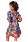 Tunique.Matière : 100% VOILE DE COTON.Construction : tissé.Lavage : machine à laver 30°C.Couleur(s) : bleu marine - rouge - orange - beige.Coupe : évasée.Longueur : asymétrique.Manches : manches 3/4.Col : v.Correspondance taille FR : S/M - L/XL - XXL (36/38 - 40/42 - 44).